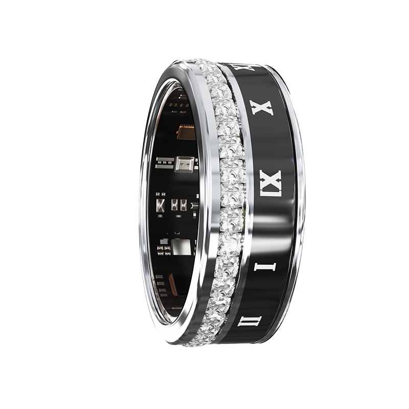 در طراحی این حلقه از نگینهای زیبایی استفاده شده که در کنار سنسورهای مختلف ترکیبی از تکنولوژی و زیبایی را در کنار هم به کاربر ارایه میدهد.