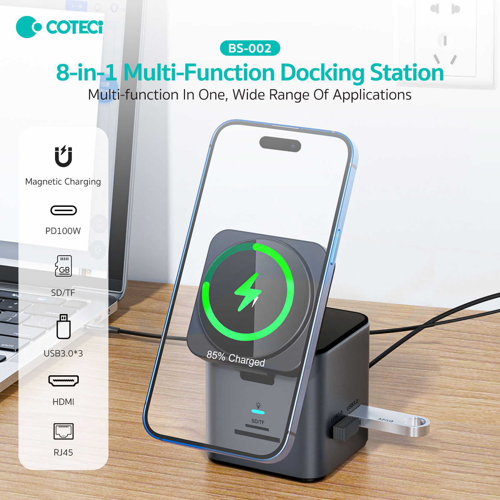 داک شارژر بی‌سیم کوتتسی مدل BS-002، یک ایستگاه شارژ چندمنظوره است که به شما اجازه می‌دهد تا از امکانات متنوع آن بهره‌برداری کنید. این دستگاه با طراحی مدرن و امکانات پیشرفته، یک رویکرد کارآمد به مدیریت انرژی و اتصالات چندگانه را فراهم می‌آورد. با قابلیت 8 در 1 این داک، شما می‌توانید نیازهای مختلف خود را در یک محصول ترکیب کنید و از فضای کمتری برای تجهیزات الکترونیکی خود استفاده نمایید.