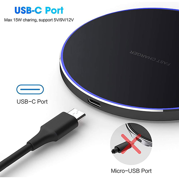 (شارژ بیسیم آسان و مناسب برای قاب): شارژر بیسیم سریع به شما این امکان را میدهد که دستگاه خود را با سرعت شارژ بالاتری، تا ۱.۸ برابر سریعتر از یک شارژر بیسیم استاندارد، شارژ کنید. دیگر لازم نیست با قاب گوشی خود سر و کله بزنید. شارژ القایی مستقیماً از طریق قابهای محافظ تا ضخامت ۶ میلیمتر/۰.۲۳ اینچ (به استثنای قابهایی با اتصالات مغناطیسی یا فلزی).