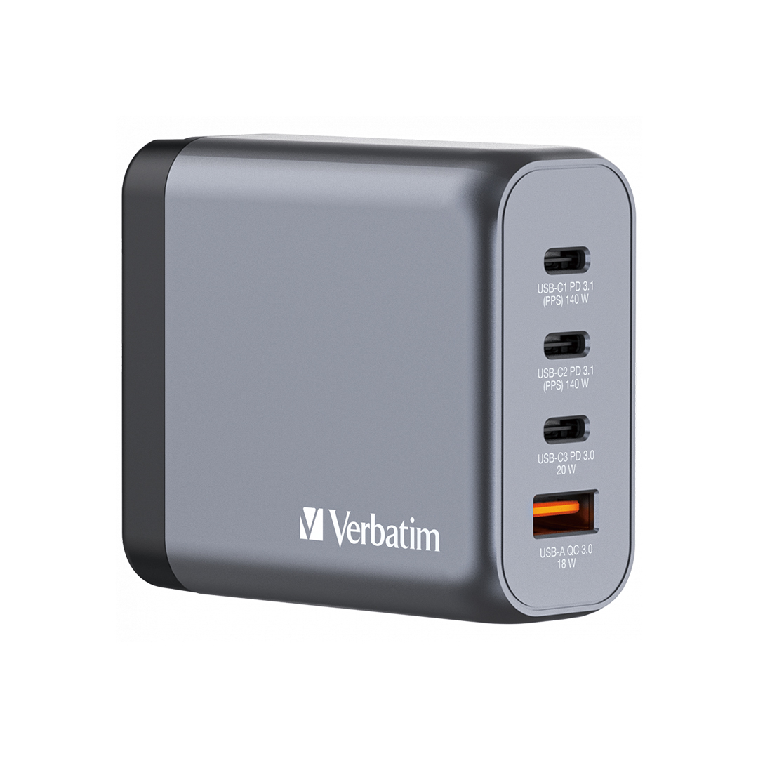 شارژر دیواری ۱۴۰ وات ۴ پورت ورباتیم مدل GNC-140 یک گزینه قدرتمند و جمعوجور برای شارژ همزمان چندین دستگاه است. این شارژر با بهرهگیری از فناوری GaN، دارای دو پورت USB-C PD 3.1 با توان خروجی تا ۱۴۰ وات، یک پورت USB-C PD 3.0 با توان ۲۰ وات و یک پورت USB-A با فناوری Quick Charge 3.0 و توان ۱۸ وات است. این ترکیب امکان شارژ سریع لپتاپها، تبلتها، گوشیهای هوشمند و سایر دستگاههای دیجیتال را فراهم میکند.
