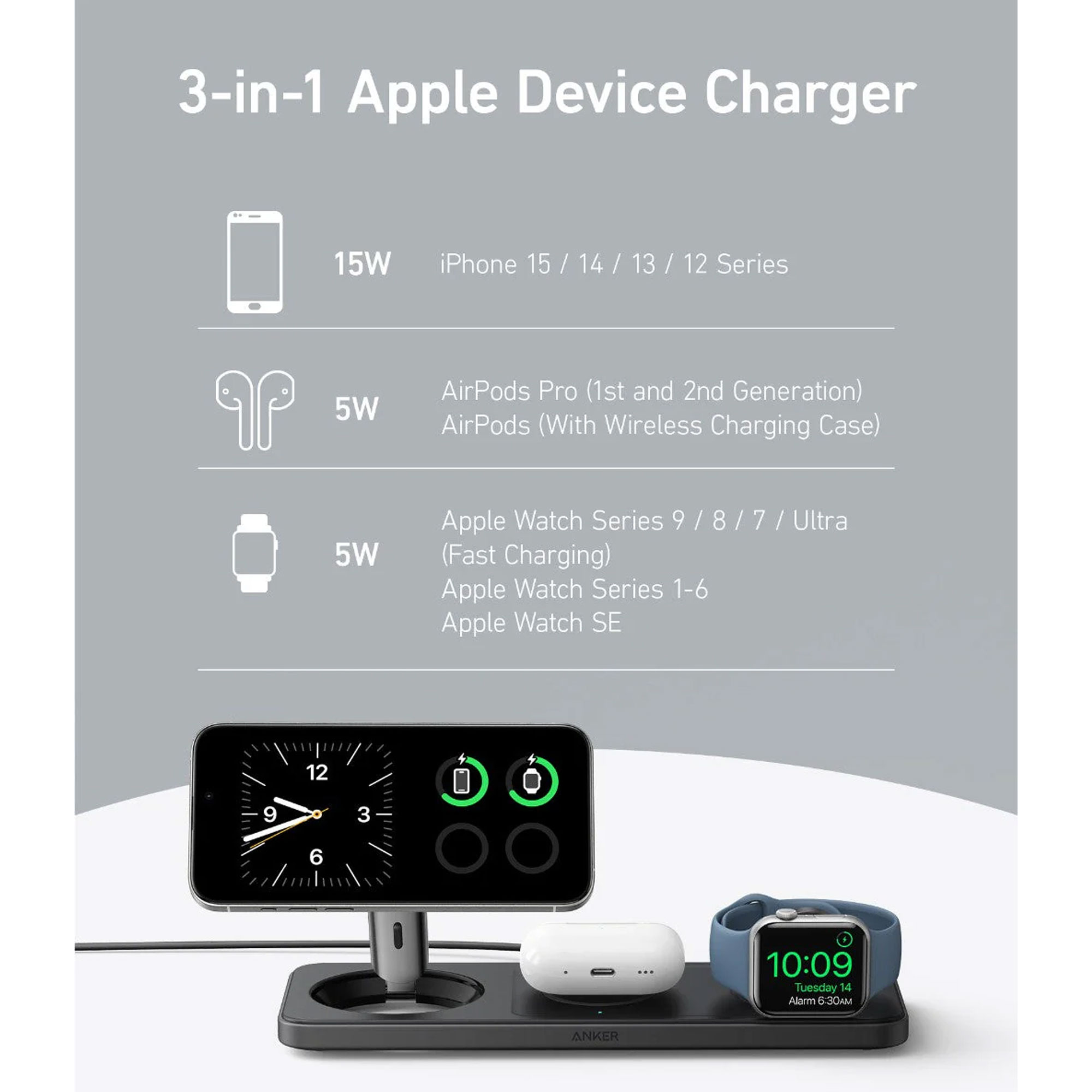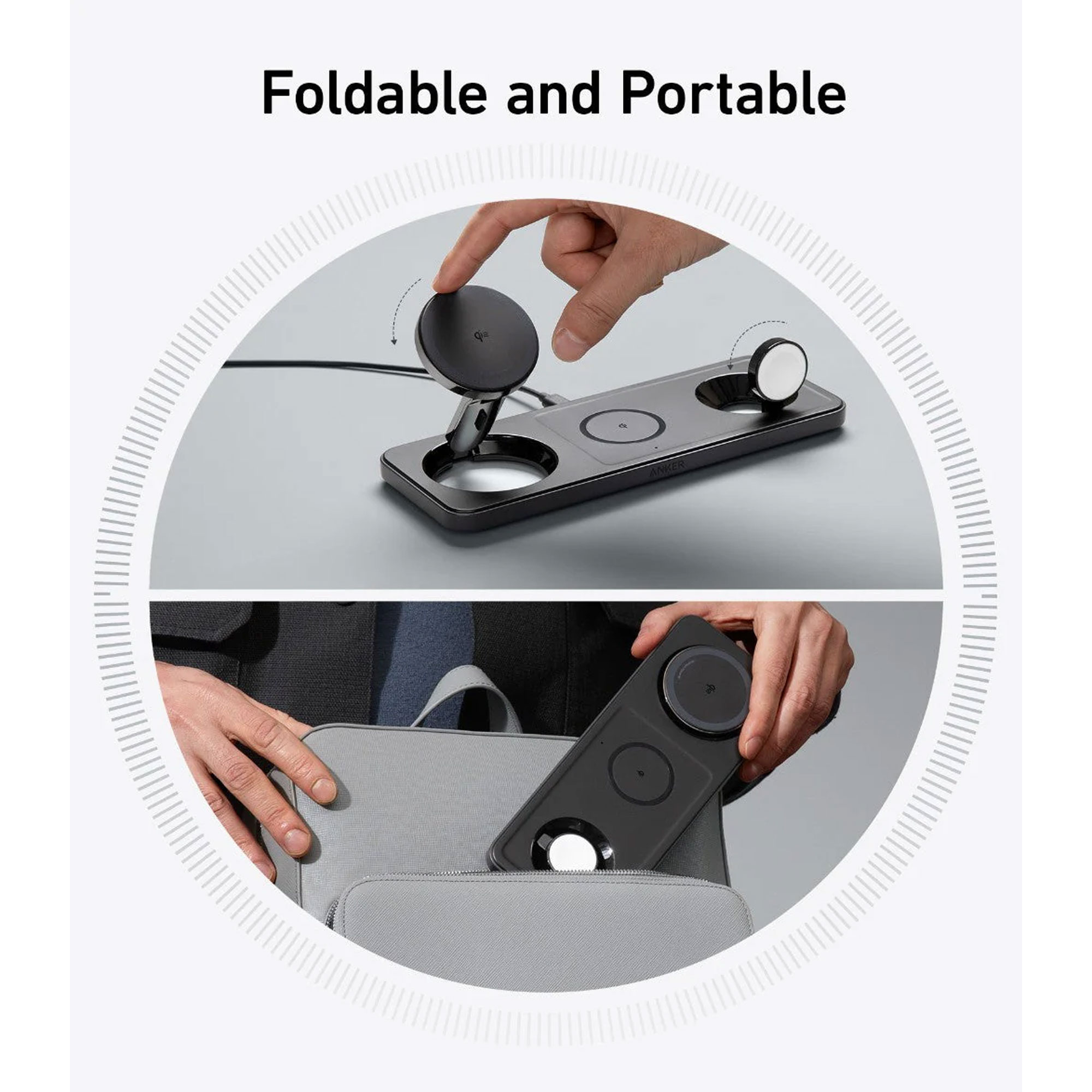 - توضیحاتدارای شارژر دیواری 40 وات انکر / پایه دارای گواهی Qi2 / قابل تنظیم برای حمل و نقل راحت / کابل USB-C به طول 1.5 متر / امکان شارژ بیسیم موبایل با توان 15 وات / امکان شارژ بیسیم ساعت هوشمند و هدفون با توان 5 وات / ابعاد 22.8x8.5x1.3 سانتیمتر
