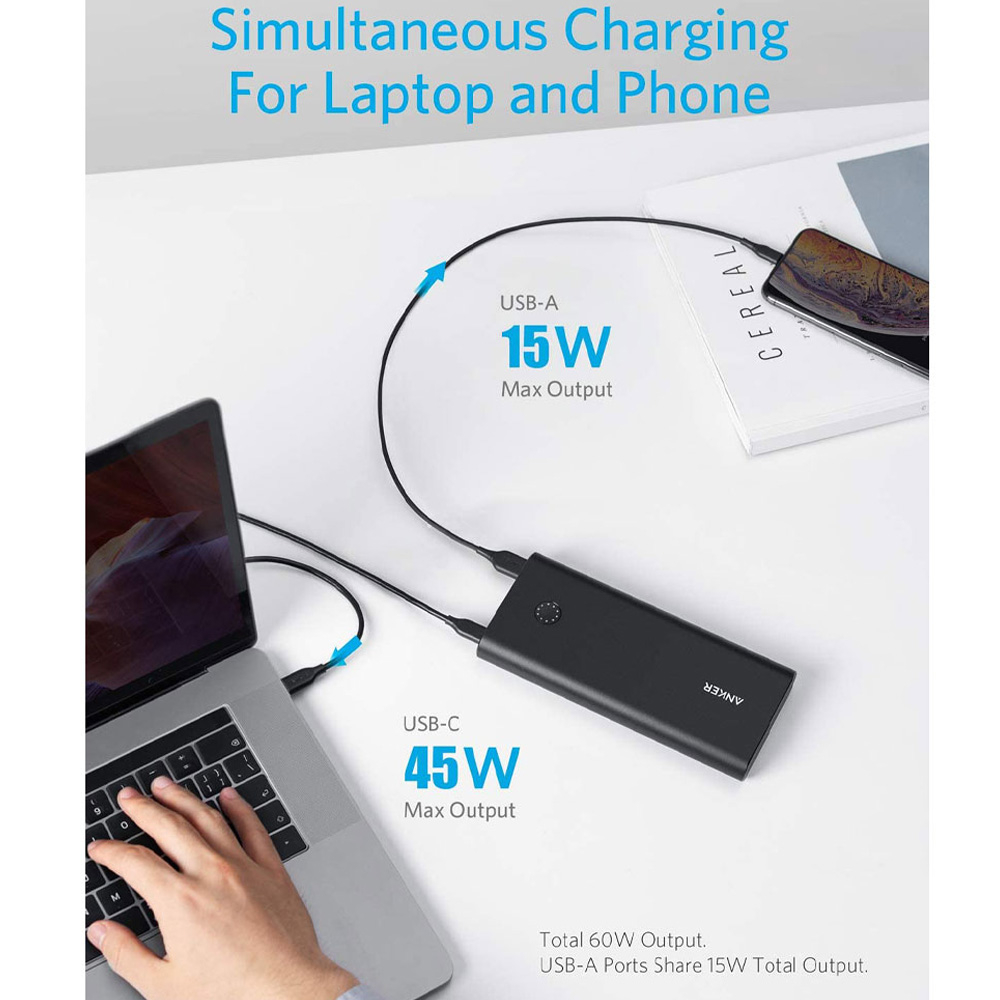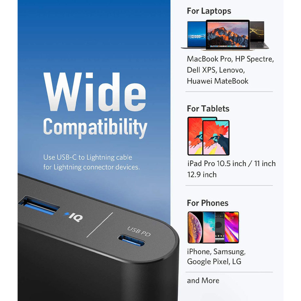 قابلیت شارژ لپتاپ از جمله مک وک پرو 13 اینچ / به همراه آداپتور تک پورت USB C با فناوری شارژ سریع PD و کابل USB-C به USB-C با پشتیبانی از شارژ سریع / قابلیت شارژ سریع مک بوک پرو 13 اینچ در 2 ساعت / مجهز به یک پورت تایپ سی با توان 45 وات و قابلیت فست شارژ PD / مجهر به دو پورت USB A با فناوری PoweriQ و توان 15 وات