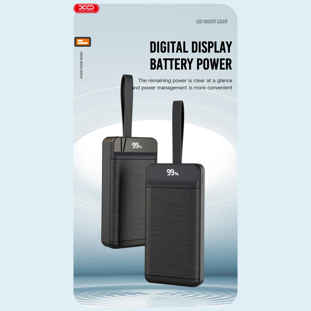 برای اطلاع از میزان شارژ پاوربانک XO PR160 نمایشگر دیجیتالی در نظر گرفته شده است که میزان شارژ باقی مانده را به در صد نمایش می دهد.