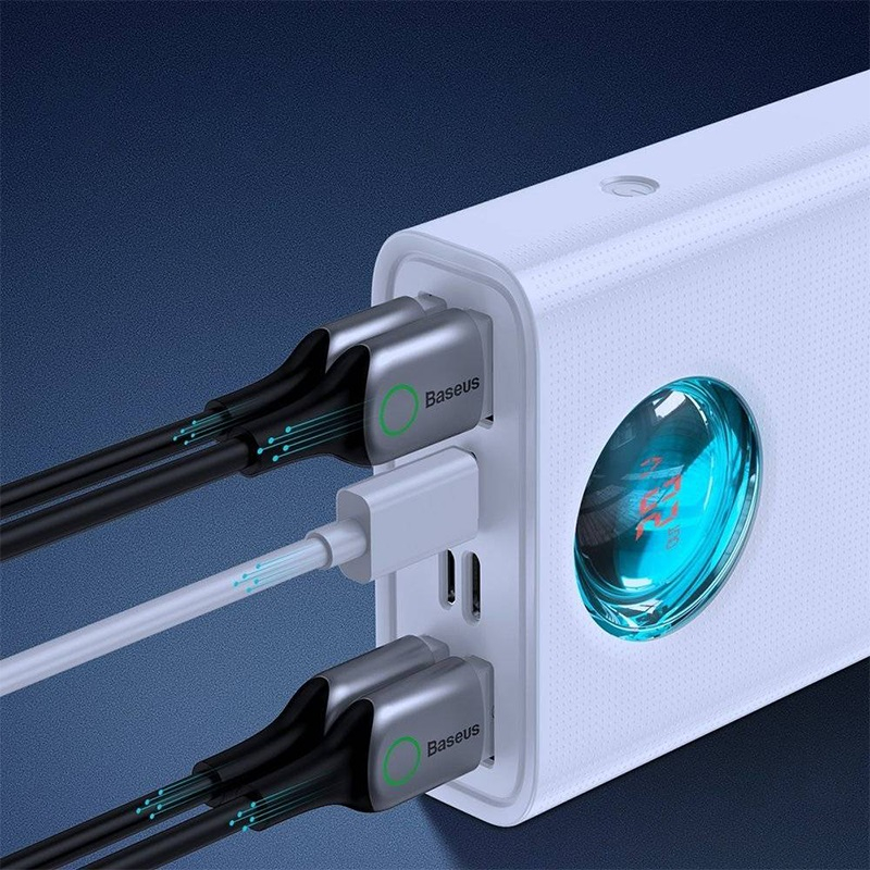 شدت جریان ورودی Micro USB: QC2.0 12V/1.5A, 9V/2A, 5V/2A (max) USB Type C: PD3.0, QC3.0 20V/3.25A, 15V/3A, 12V/3A, 9V/3A, 5V/3A (max) شدت جریان خروجی USB Type C: PD3.0, QC3.0 20V/3.25A, 15V/3A, 12V/3A, 9V/3A, 5V/3A (max) USB1/2/3: 5V/3A USB4: QC3.0 + SCP, 20V/1.5A, 12V/2.5A, 9V/3A, 5V/3A~4.5A, 4.5V/5A Lightning: 5V/2.1A ویژگی ها: شارژ سریع 65 وات