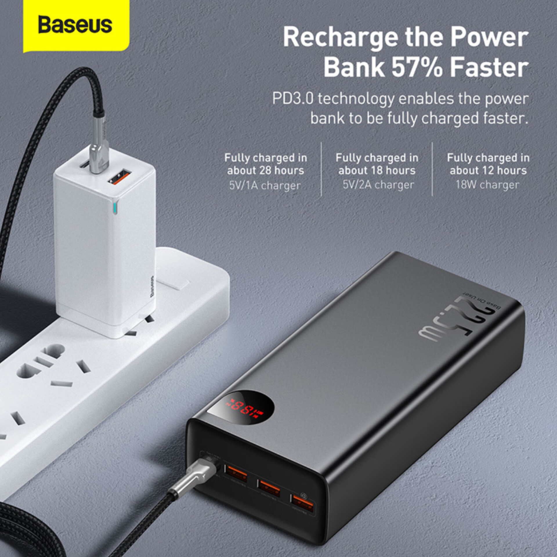 پاوربانک بیسوس 40000 میلی اهم امپر توان 22.5 وات Baseus Adaman 40000mAh Power Bank 22.5W PPAD020101 :