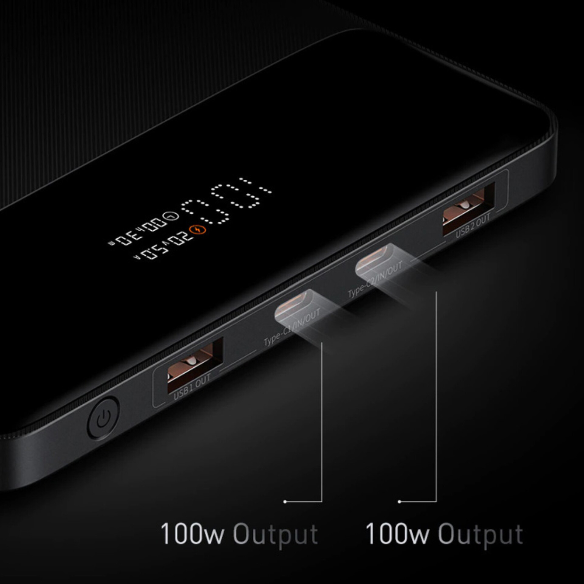 پاوربانک بیسوس Blade با دارا بودن 2 درگاه USB-A و 2 درگاه USB-C به شما امکان می دهد تا حداکثر 4 دستگاه را به طور همزمان شارژ کنید. درگاه های شارژ USB از توان شارژ 30 واتی پشتیبانی می کنند و در گاه های USB-C توان خروجی معادل 100 وات و توان ورودی 65 وات را دارا می باشند که به شما امکان می دهد برق چندین دستگاه مختلف را به طور همزمان تامین کنید. این شارژ همراه بسیار باریک از پروتکل های SCP، FCP، QC 3.0 و PD 4.0 پشتیبانی می کند. این پاوربانک برای شارژ گوشی iphone 14 Pro Max می تواند حداکثر توان 27 وات را ارائه نماید.