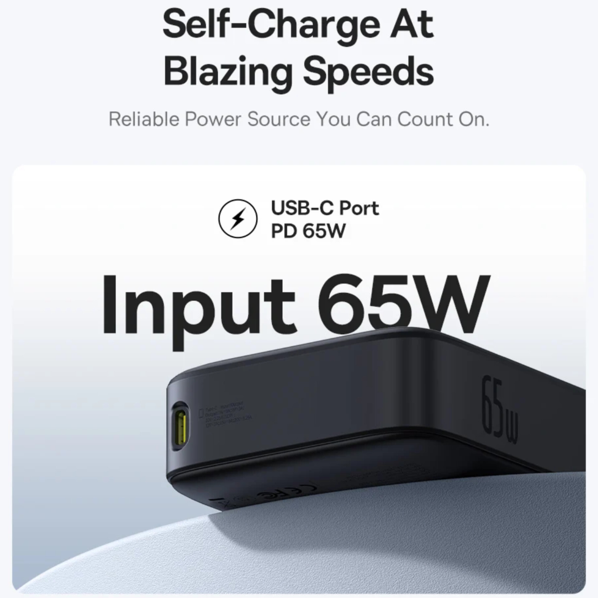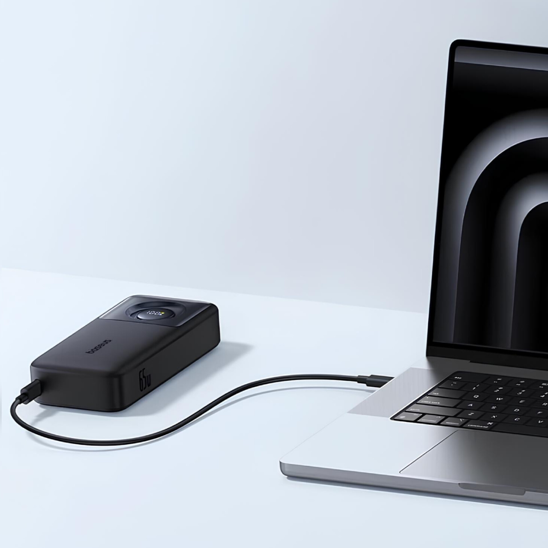 شارژر قابل حمل Baseus Free2Pull 65W با طراحی کارآمد خود، دارای یک پورت دوطرفه Type-C با حداکثر توان خروجی 65 وات و یک کابل تایپ‌سی دوطرفه قرقره‌ای با حداکثر توان خروجی 60 وات، امکان شارژ همزمان دو دستگاه را فراهم می‌آورد. علاوه بر این، هر دو پورت تایپ‌سی به شما این امکان را می‌دهند تا پاوربانک را با حداکثر توان ورودی 65 وات توسط پورت و 60 وات توسط کابل، به سرعت شارژ نماید.