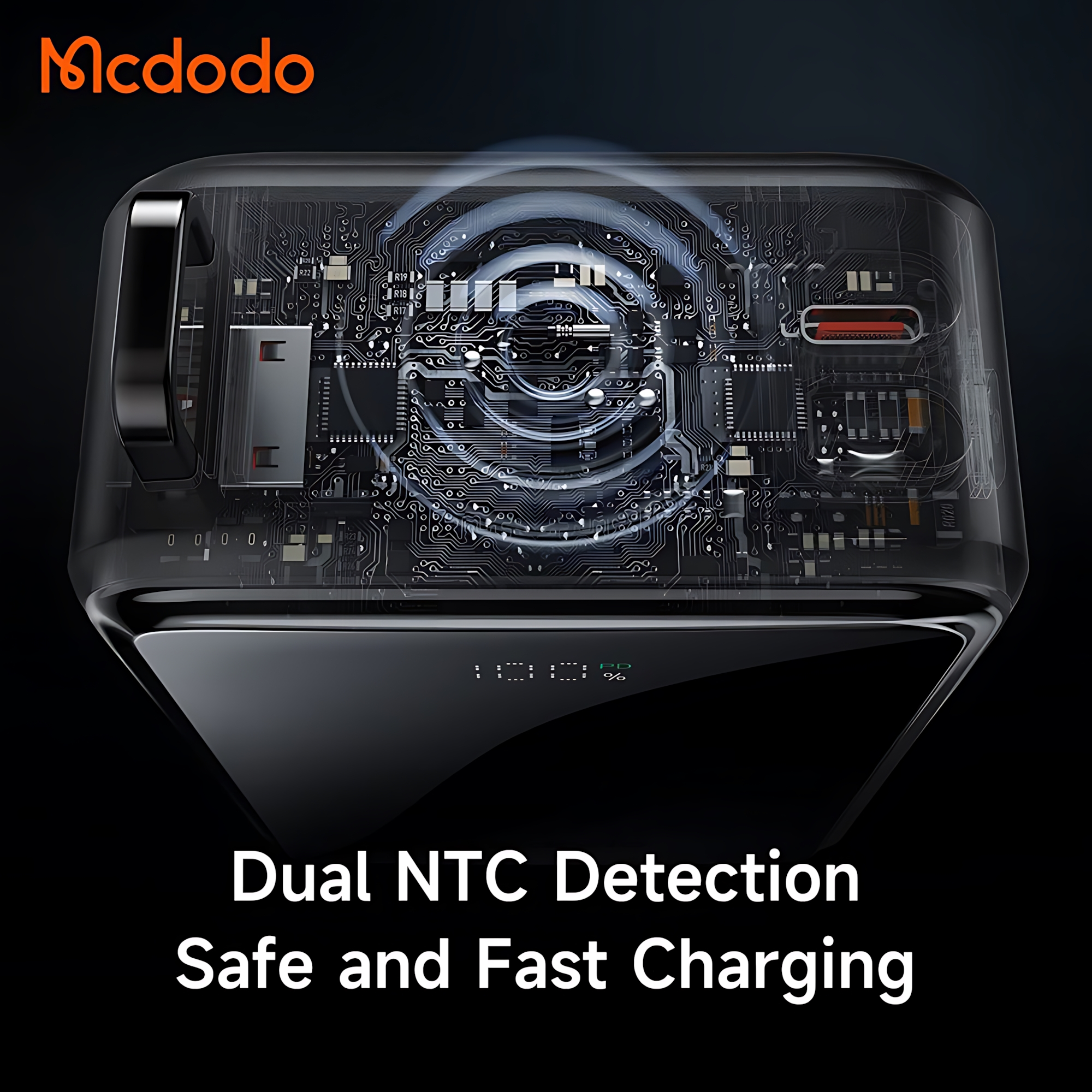 - امکانات و قابلیتهاساخته شده از پلی کربنات ضد حریق PC + پليمر ABS | حداکثر توان خروجی 100 وات | قابلیت شارژ سریع | پشتیبانی از انواع پروتکلهای شارژ سریع PD3.0/ PD2.0/ QC4.0/ QC3.0/ QC2.0/ SCP/ FCP/ AFC/ BC1.2/ Apple 2.4A | دارای 2 پورت ورودی تایپ سی 60 واتی جهت شارژپاوربانک | کالای اورجینال مک دودو, واردات انحصاری تیم تکنیک تل | دارای 3 پورت خروجی : یک پورت USB-A ، دو پورت تایپ سی | دارای نمایشگر دیجیتال برای نمایش درصد شارژ باتری | به همراه کابل کوتاه 100 وات Type-C به Type-C | قابلت شارژ انواع لپ تاپ ، مک بوک و نوت بوک ها و انواع گوشی های موبایل | 33 درصد ابعاد کوچکتر نسبت به پاوربانک های رقیب خود در بازار | دارای 2 تراشه هوشمند کنترل دمایی لحظه ای NTC جهت امنیت و پایداری بالاتر عملیات شارژ | سازگاری با کلیه برندهای اپل ، سامسونگ ، شیائومی و هوآوی، اپو و … | امکان شارژ همزمان 3 دستگاه با هم از طریق 2 پورت تایپ سی | دارای فناوري شارژ ایمن (MultiProtect) | محافظت کامل از دستگاه در برابر اتصال کوتاه ، نوسانات آمپر و ولتاژ و نوسان حرارت | داراي تراشهای هوشمندی که میزان جریان و ولتاژ لازم برای هر دستگاه را بصورت اتومات و سريع تشخيص داده و توان خروجی را با توجه به آن براي دستگاه شما تنظيم ميكند | مطابقت كامل با كليه استانداردهاي حمل و نقل هوايي بين المللي در پروازها ، حمل راحت بدون نگراني در كليه پروازها | دارای گواهینامه ایمنی CE/ RoHs/ FCC | طراحی بسیار شیک و مینیمال و لاکچری