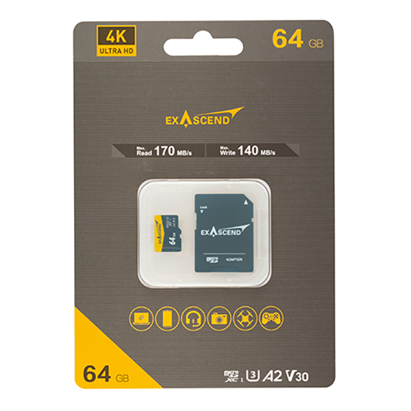 کارت حافظه Exascend Catalyst microSD از نسل جدید کارتهای حافظه با استاندارد UHS‑I و کلاس سرعت V30 است که امکان ضبط ویدیوهای 4K و انتقال سریع فایلها را فراهم میکند این کارت حافظه با ظرفیتهای متنوع 64 گیگابایت عرضه شده و سرعت خواندن تا 170 مگابایت بر ثانیه را ارائه میدهد مقاومت بالای این رم در برابر آب، شوک، پرتوهای X و دماهای سخت، آن را برای عکاسان و فیلمسازان حرفهای ایدهآل میسازد.